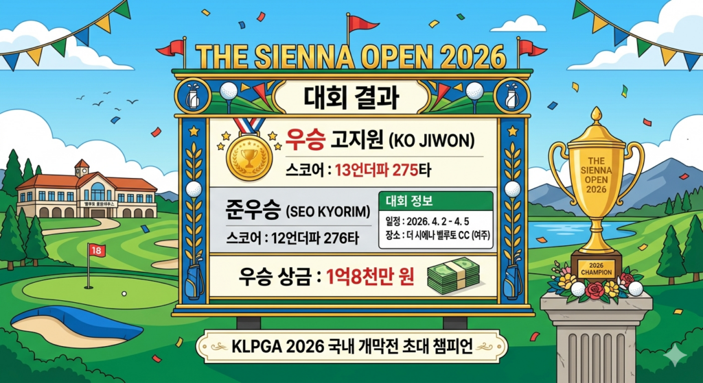 결국 이번 대회가 남긴 한 줄은 분명하다. 더 시에나 오픈 2026은 화려하게 밀어붙인 선수가 아니라, 끝까지 가장 덜 흔들린 선수가 가져간 개막전이었다. 그리고 그 이름이 고지원이었다. 초대 챔피언이라는 상징, 통산 3승이라는 결과, 그리고 시즌 첫 국내 대회 우승이라는 무게까지 생각하면, 이번 더 시에나 오픈은 고지원에게도 대회 자체에도 꽤 선명한 출발점이 됐다고 볼 수 있다.